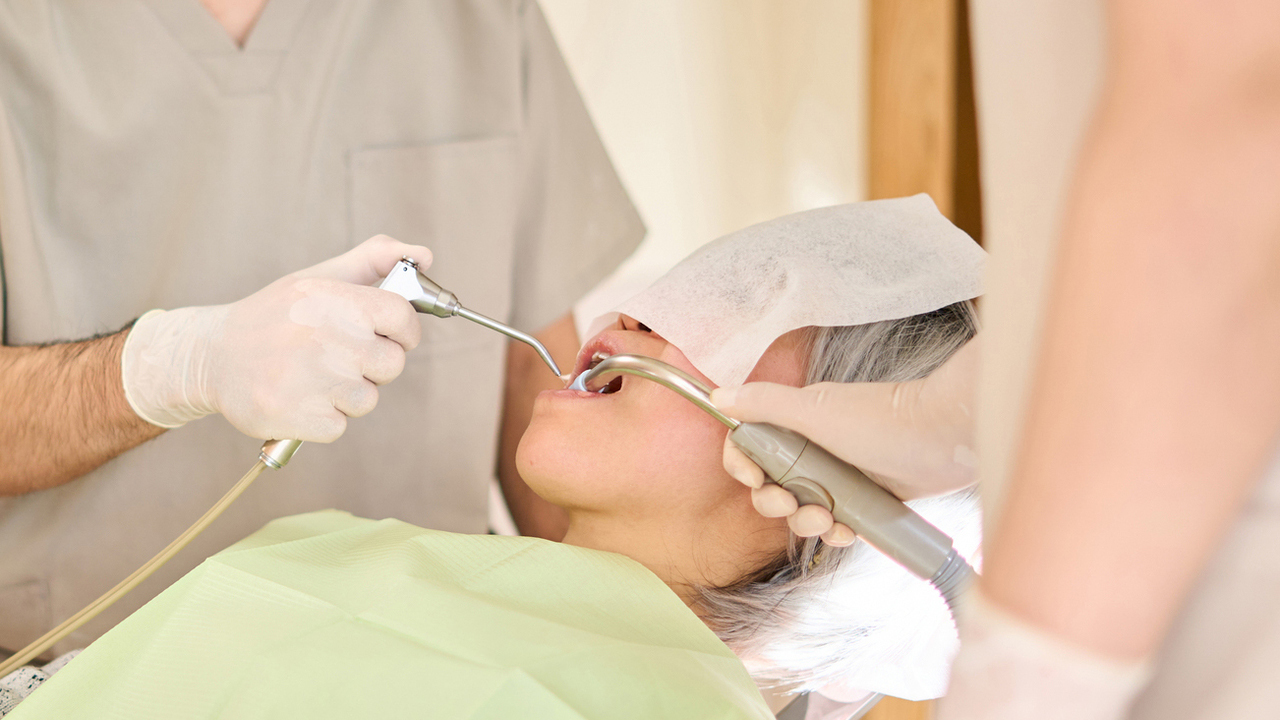 麻酔注射の前には、塗るタイプの表面麻酔を歯茎に用います。先に麻酔をすることで、歯茎に注射針が刺さるときの痛みの緩和が可能です。